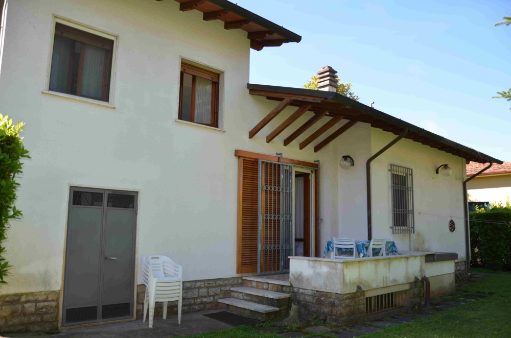Marina di Pietrasanta, loc. Fiumetto, a circa 500 metri dal mare, zona tranquilla. Disponiamo di questa villetta singola con giardino su 4 lati. Si sviluppa prevalentemente al piano terra, con 2 camere da letto doppie, un bagno a doccia, soggiorno, cucinotto, veranda anteriore e posteriore. Al primo piano una camera da letto con bagno a doccia. Dispone inoltre di locale  lavanderia con un bagno di servizio. Arredamento gradevole. Affitto uso vacanza. Periodo disponibile LUGLIO. Non sono disponibili altri periodi al di fuori di quelli indicati.